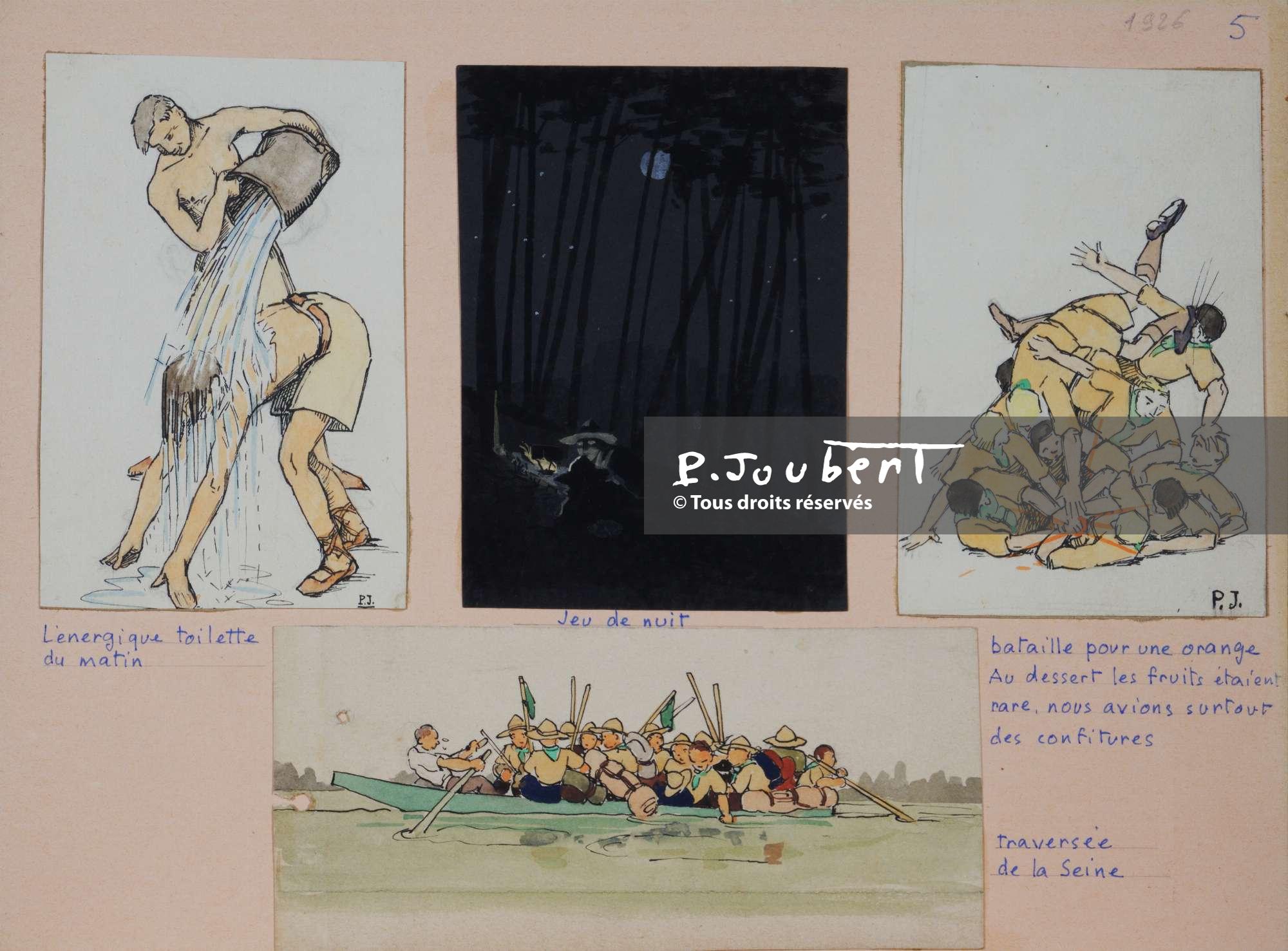 Titre : 1926 (JUM5) Vie au camp; toilette, jeu de nuit, bataille pour un fruit, radeau