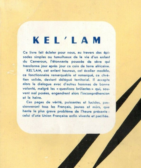 Titre : « Kel’Lam »,   roman (non scout) sur le Cameroun. Edition Alsatia 2è trimestre 1958.