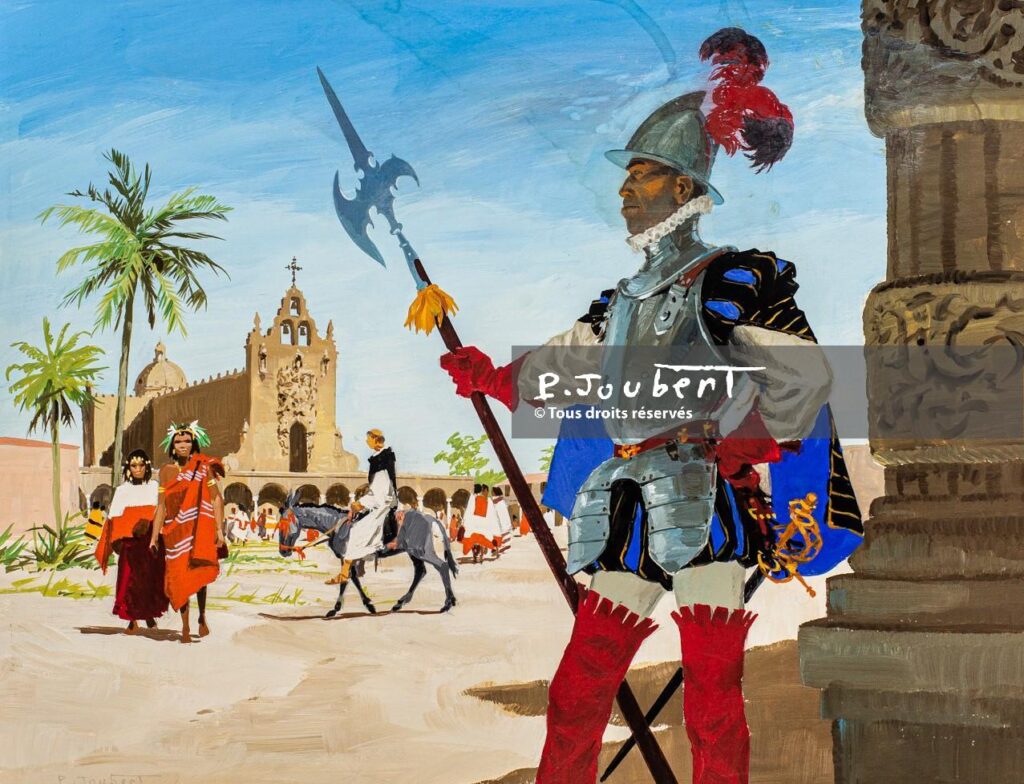 Code PJ : Pierre Joubert OR-NP-LH-MEX-garde-1961 Titre : Garde Technique : Gouache (GOU) Description : Belle gouache montrant un garde en premier plan mais avec une belle église baroque au second plan, un moine sur son âne et une femme avec son enfant. Gouache découverte par la vente “Good” du 11 mai 2021 qui … Lire la suite de 1961 Garde au Mexique – Original