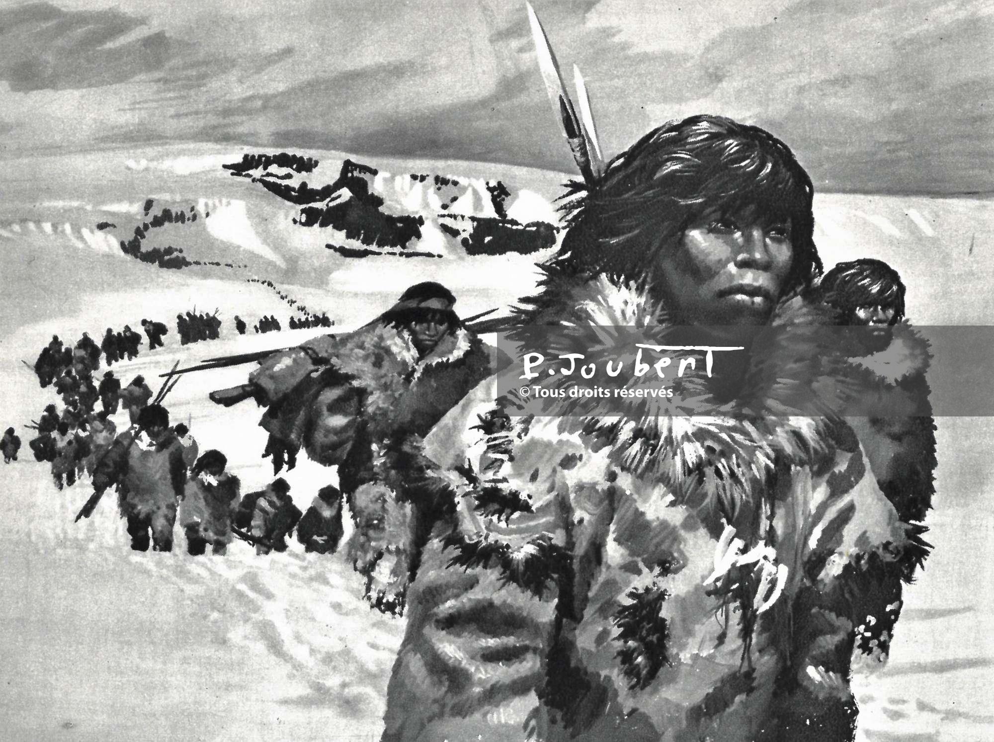 Illustration à la gouache en couleur, publiée ici en noir et blanc mais certainement utilisée en couleur pour les conférences des “connaissance du monde” de Jean Claude Berrier.