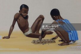 Code PJ : PierreJoubert-OR-RJ-JAM-KA-P3-1967 Titre : konan apprend un jeu difficile l’AWALE. Technique : Gouache (GOU) Description : Tiré de la revue “Jeunes années magazine” numéro spécial sur la vie quotidienne de deux enfants africains dans leur village du pays Baoulé, en Côte d’Ivoire. page 3 Date : 1967 Précision date : Non daté … Lire la suite de 1967 konan apprend un jeu difficile – Original