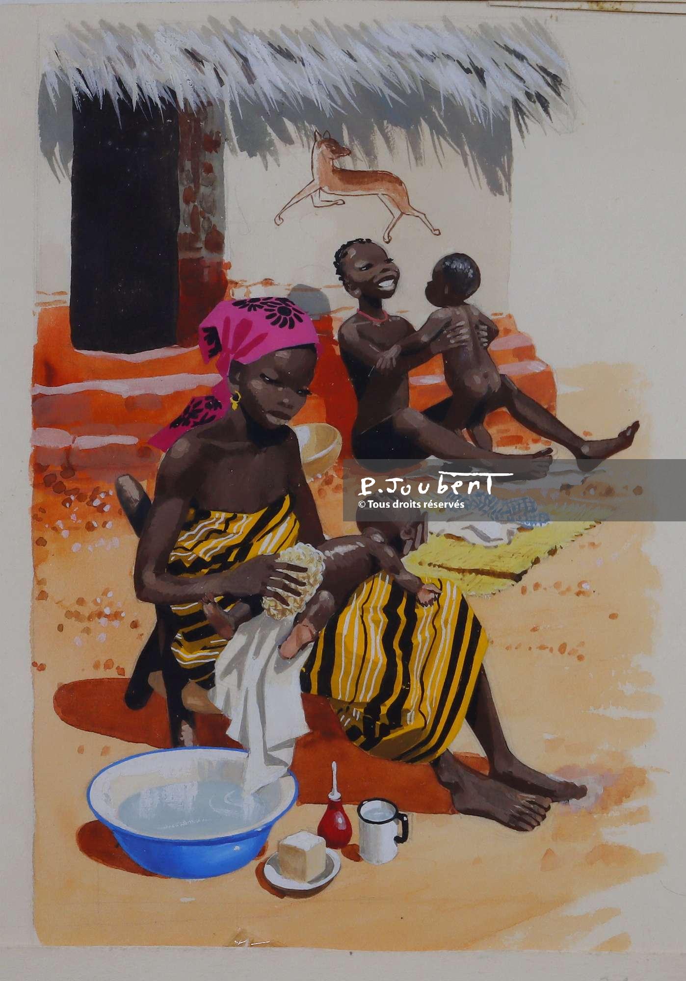Description : Tiré de la revue “Jeunes années magazine” numéro spécial sur la vie quotidienne de deux enfants africains dans leur village du pays Baoulé, en Côte d’Ivoire. P16 Bas et Gauche