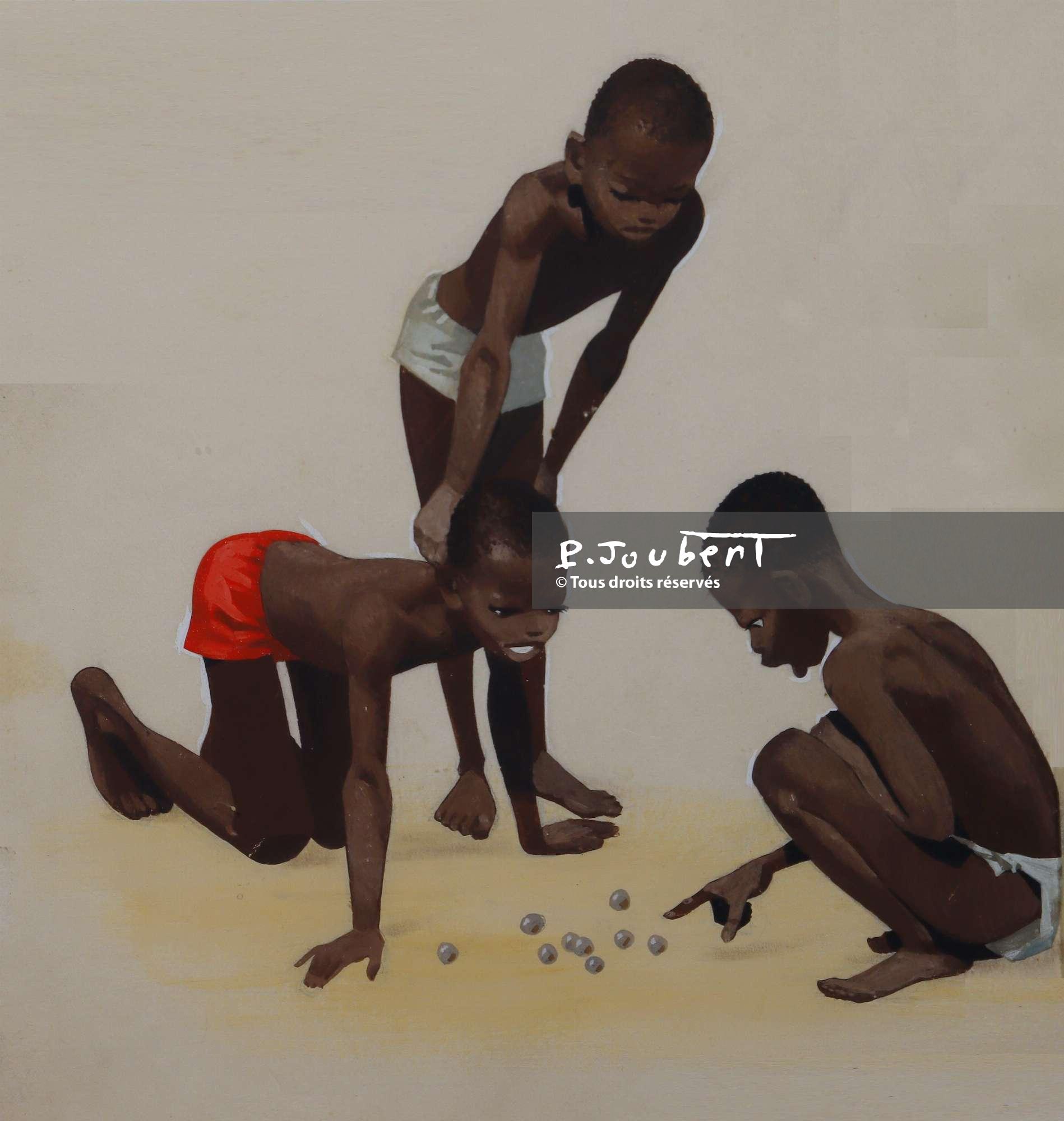 1967 n'guessan et deux camarades jouent aux billes - Original