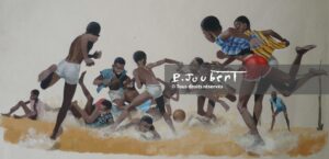 Code PJ : PierreJoubert-OR-RJ-JAM-KA-CVbas-1967 Titre : Un fameux match de football Technique : Gouache (GOU) Description : Tiré de la revue “Jeunes années magazine” numéro spécial sur la vie quotidienne de deux enfants africains dans leur village du pays Baoulé, en Côte d’Ivoire. page 14 et 15 et inversée en couverture Date : 1967 … Lire la suite de 1967 Un fameux match de football – Original
