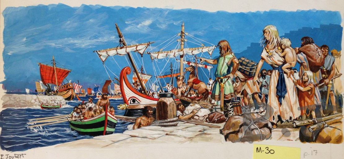 En ce mois de mai 429, le petit port de Tarifa, situé à la pointe sud de l’Espagne, connait une agitation inhabituelle. Dans le plus grand désordre, 80 000 Vandales s’y embarquent pour l’Afrique du Nord dont ils convoitent les richesses. Tous les bateaux disponibles ont été réquisitionnés. Les guerriers et leurs familles s’y entassent avec les bagages et le butin amassé e Gaule et en Espagne, sans oublier les cheveaux. L’inconfort est grand, mais le temps est beau et la traversée du détroit de Gibraltar n’est que de courte durée.
