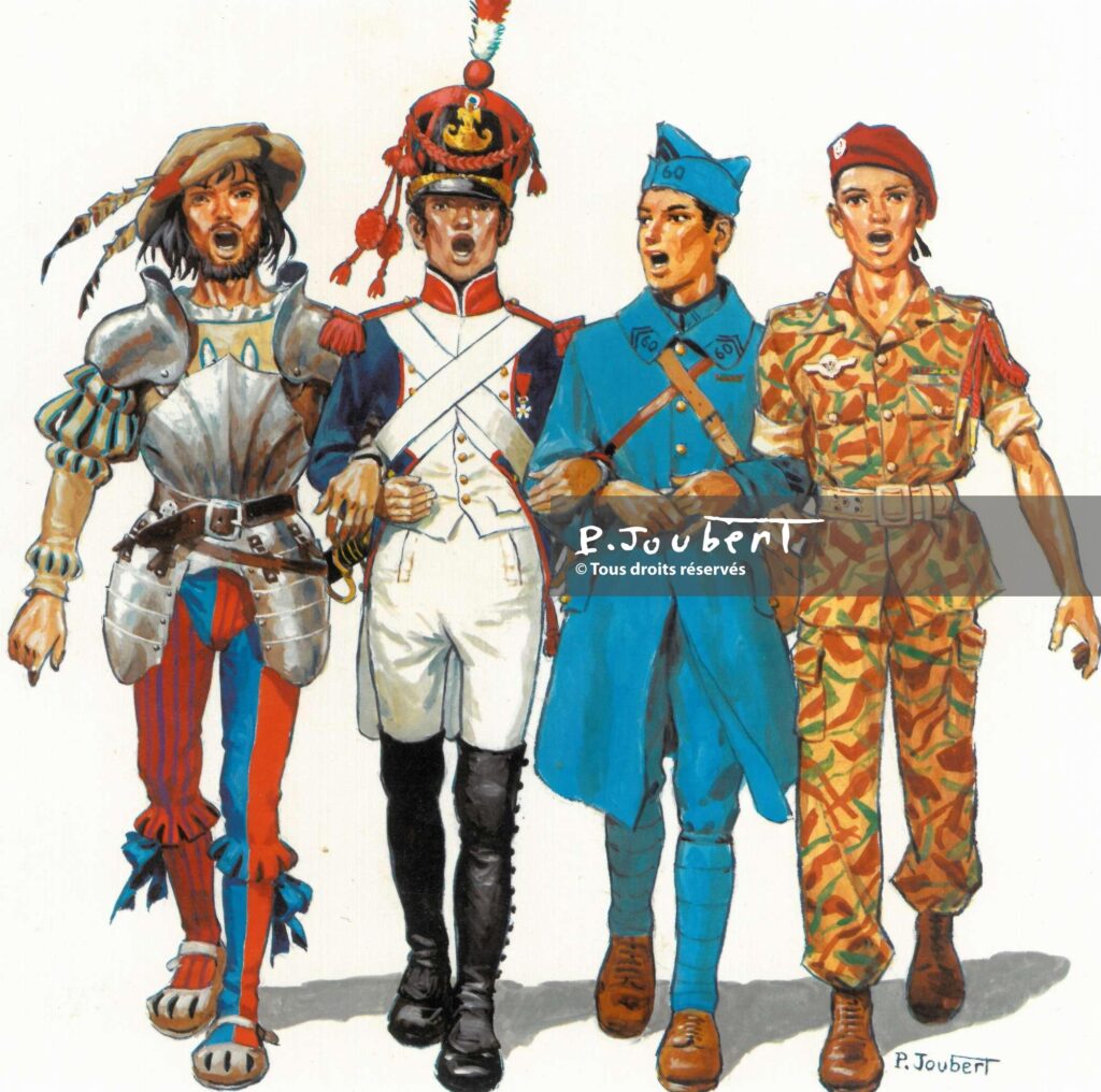 Code PJ : A-EOR-MASF-CV-CI-1985 Titre : EN MARCHANT Avec les soldats de France : Couverture illustrée Couverture en gouache couleur présentant 4 époques de militaires : du cuirassé renaissance au béret rouge moderne CHANTANT EN CHOEUR !! Type d’illustration : Gouache de couverture illustrée (CI) Année : 1985 Type d’édition : Illustration originale (IO) Thème … Lire la suite de 1985 EN MARCHANT Avec les soldats de France – Couverture en gouache