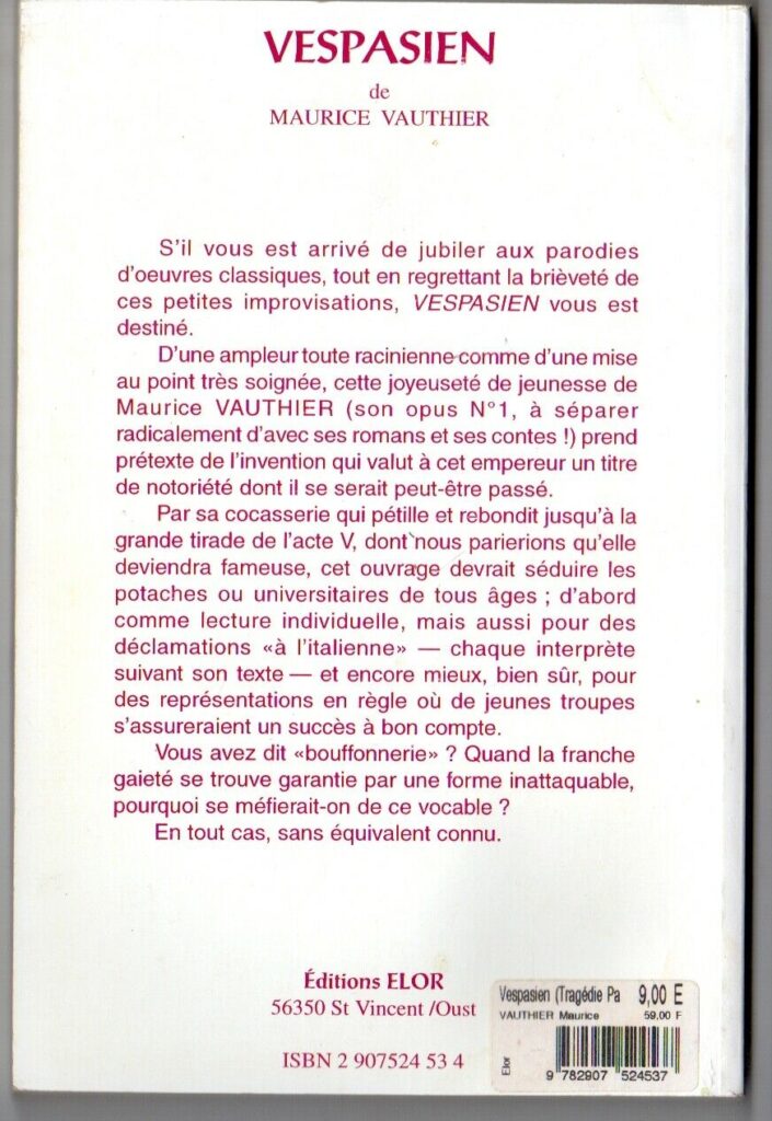 Titre :« Vespasien – Tragédie pastiche »