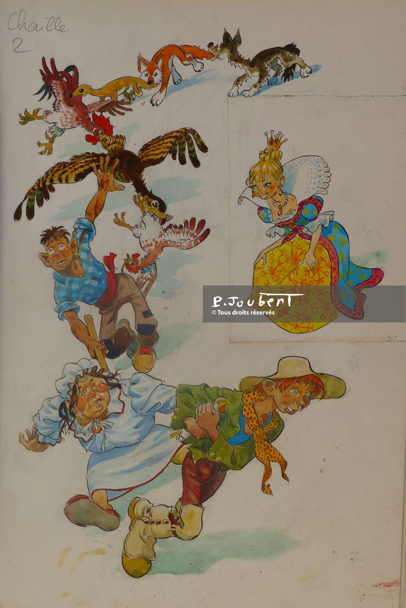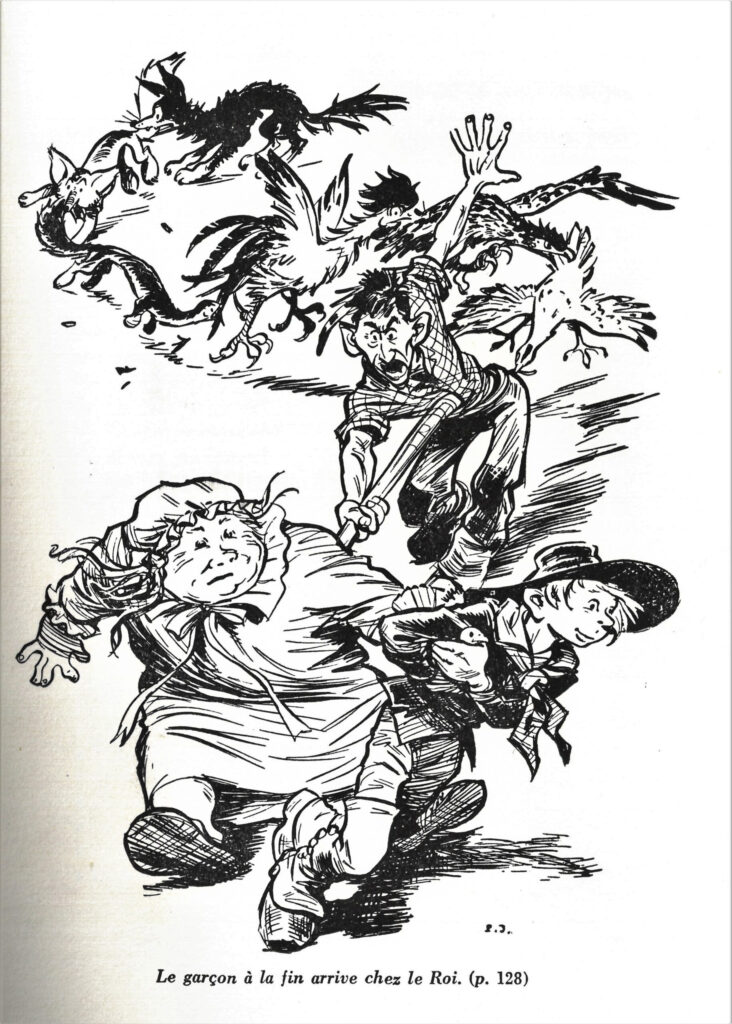 Son pigeon sous le bras, et trainant cette compagnie comme une autre diablerie de saint Antoine, le garçon à la fin arrive chez le roi.