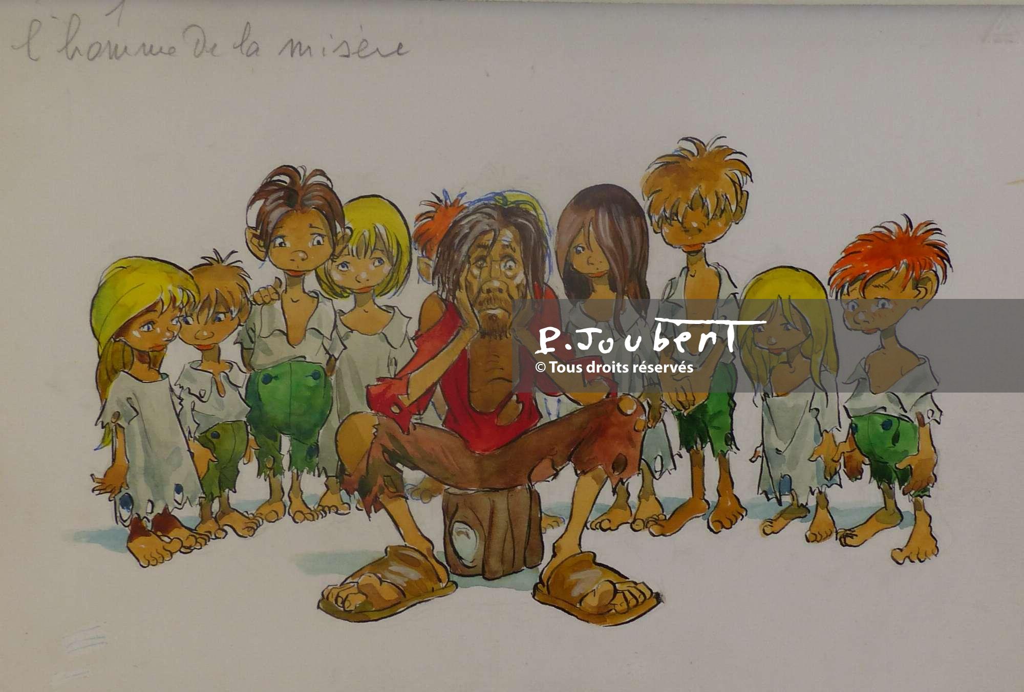 Description : l’homme de la misère : il y avait une fois un homme qui avait autant d’enfants qu’il y a de pierres par les champs. Un pauvre homme, long comme un jour sans pain, et une mine de salade en cave . . . .