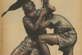 2 scouts plantent un fanion : couv SCOUT 289 de 1954