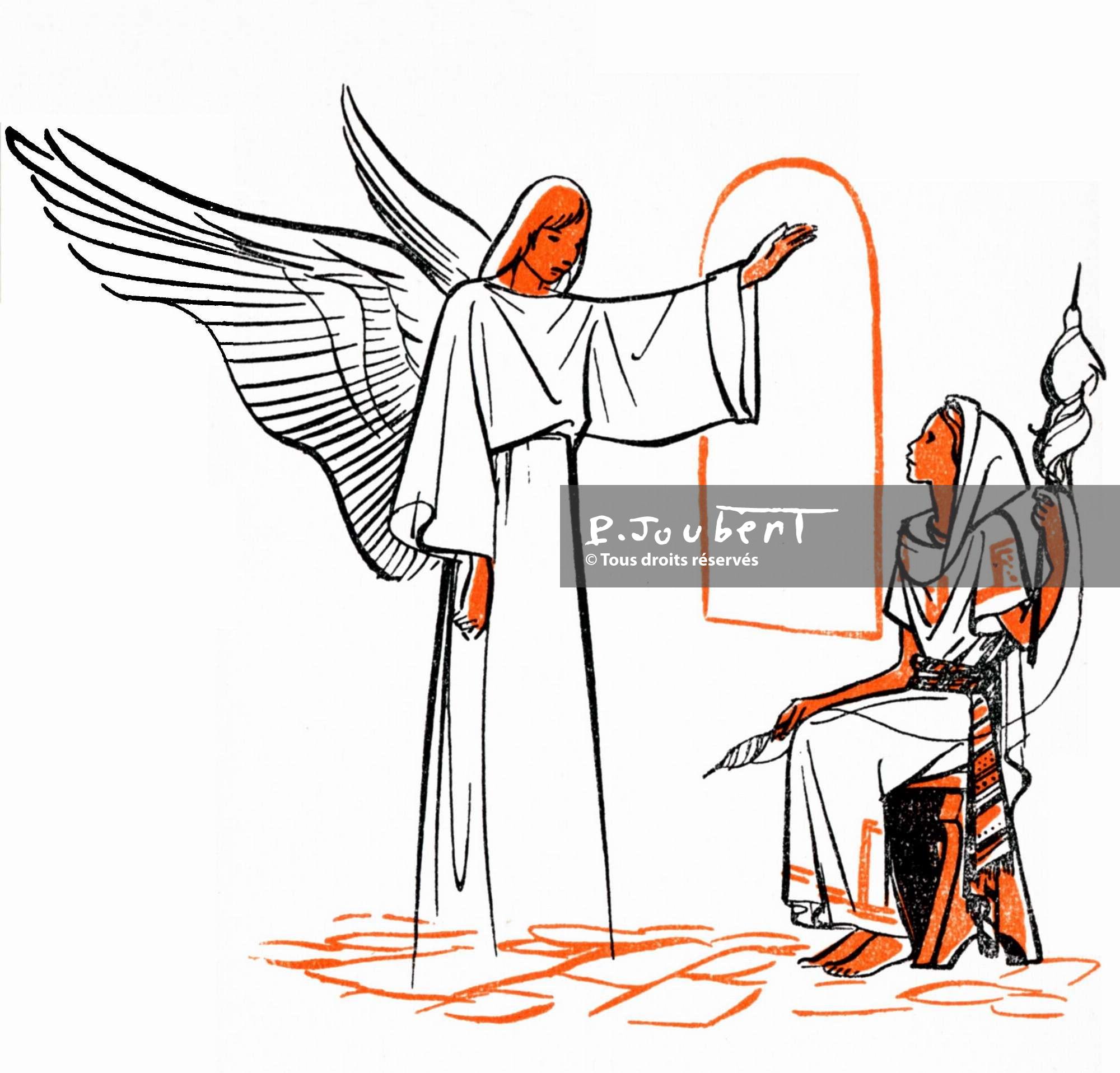 Illustration de la page sur l’Annonciation en bichromie