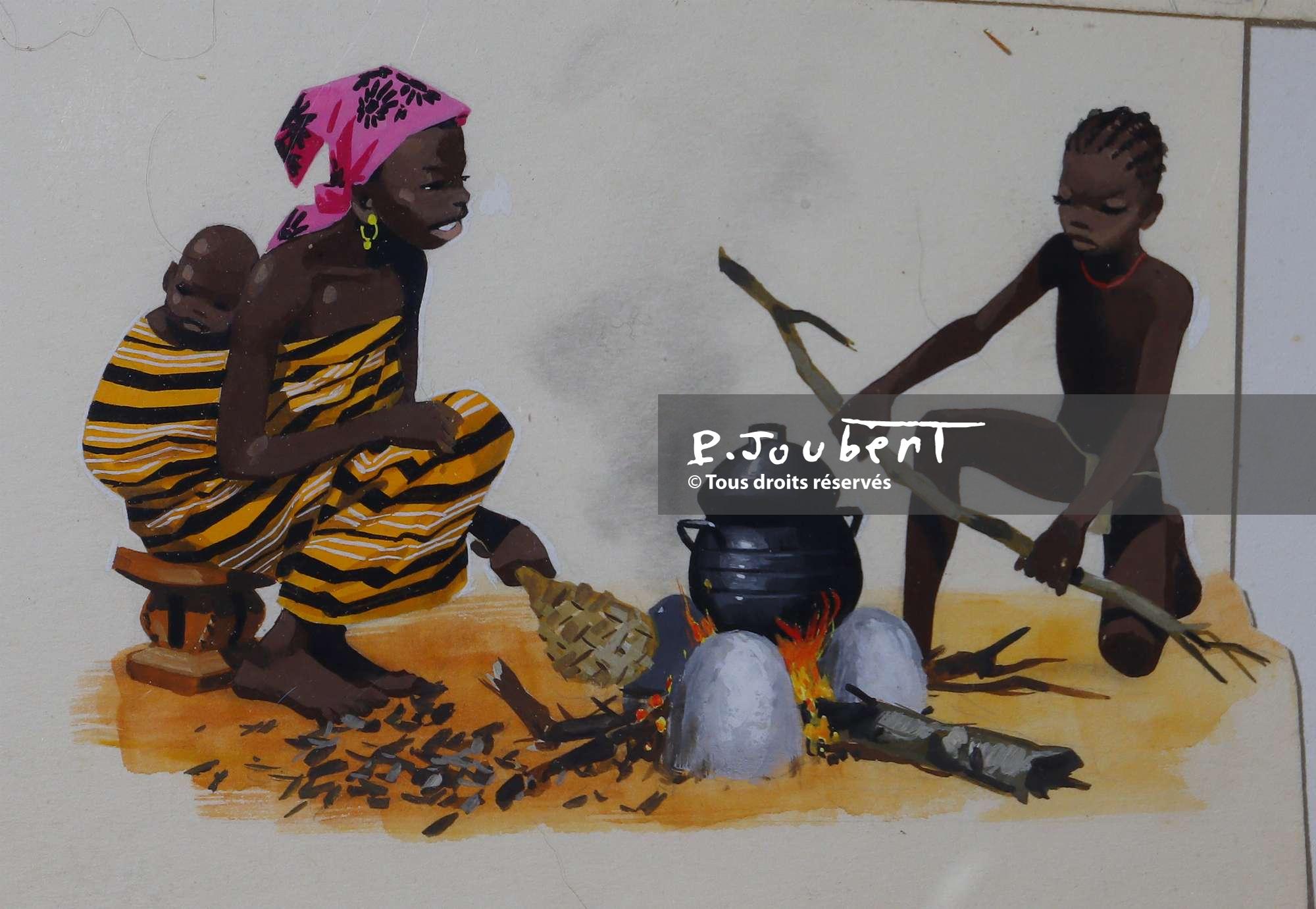 Titre : Amèna entretien le feu pendant la préparation du foutou (CE)