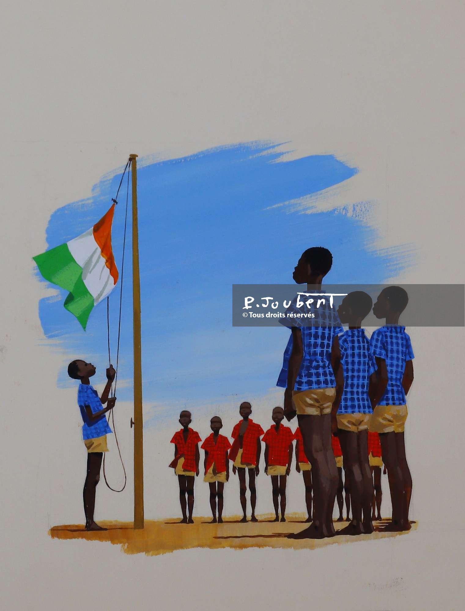 Description : Tiré de la revue “Jeunes années magazine” numéro spécial sur la vie quotidienne de deux enfants africains dans leur village du pays Baoulé, en Côte d’Ivoire.  P16  en haut à droite