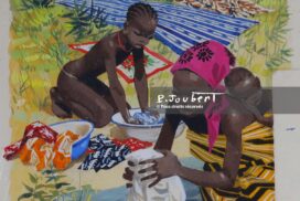 Code PJ : PierreJoubert-OR-RJ-JAM-KA-P16HG-1967 Titre : Amèna et sa mère font la lessive au marigot Technique : Gouache (GOU) Description : Tiré de la revue “Jeunes années magazine” numéro spécial sur la vie quotidienne de deux enfants africains dans leur village du pays Baoulé, en Côte d’Ivoire. page 16 en haut à gauche Date : … Lire la suite de Amèna et sa mère font la lessive au marigot – Original