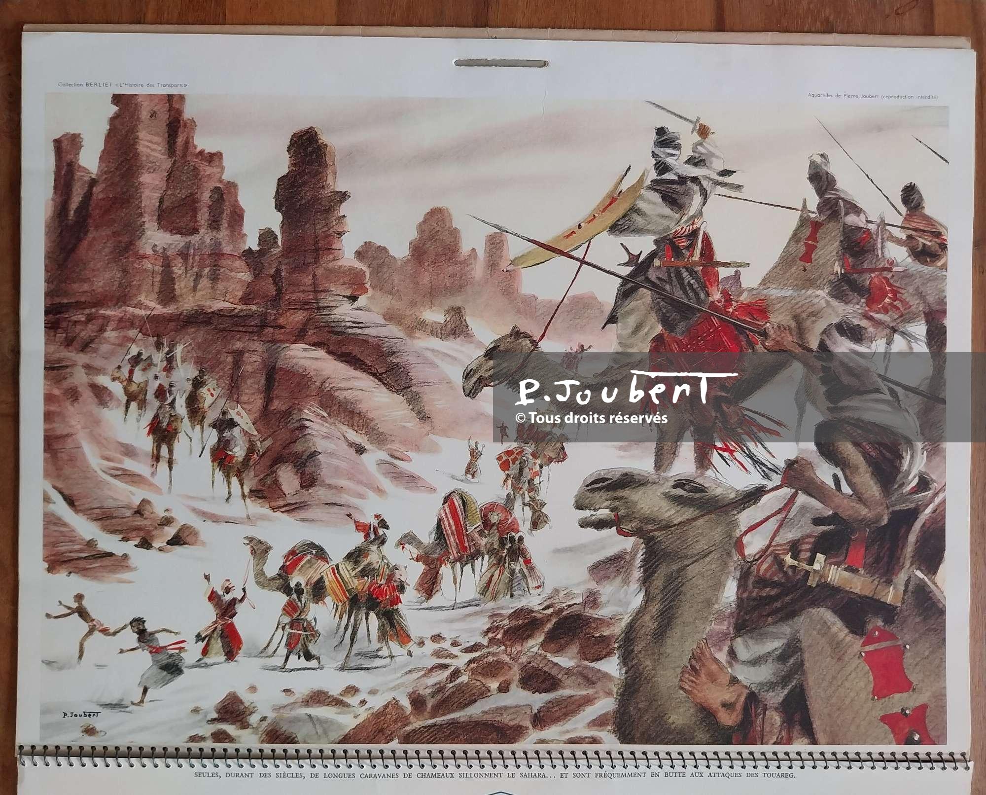 Calendrier Berliet 1959 – caravanes de chameaux sillonnent le Sahara.