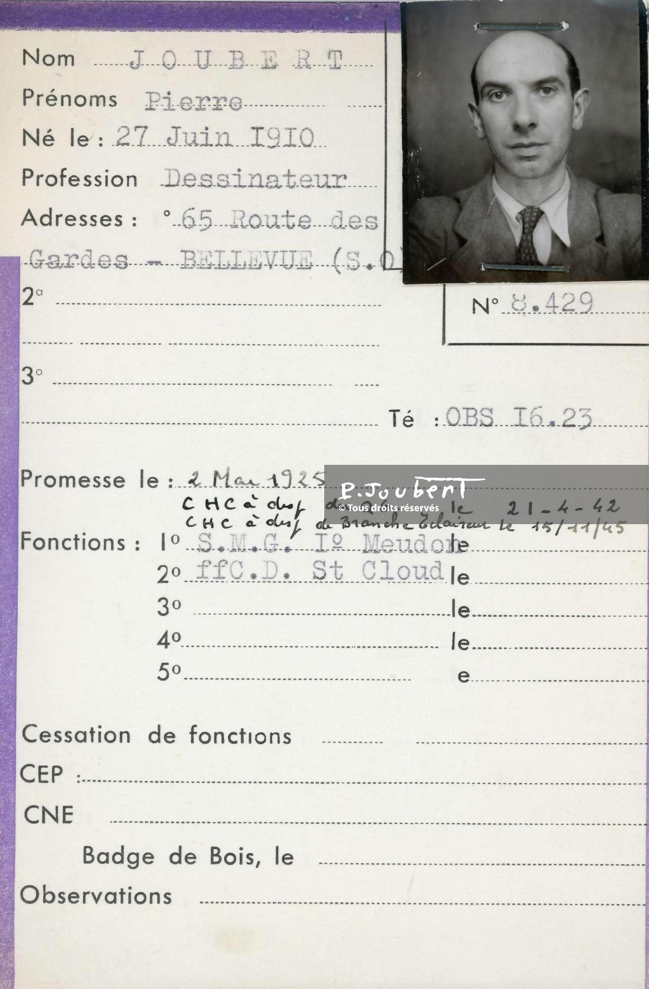 Titre : Carte scout de Pierre Joubert vers 1950