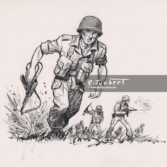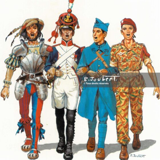 1985 EN MARCHANT Avec les soldats de France – Couverture en gouache
