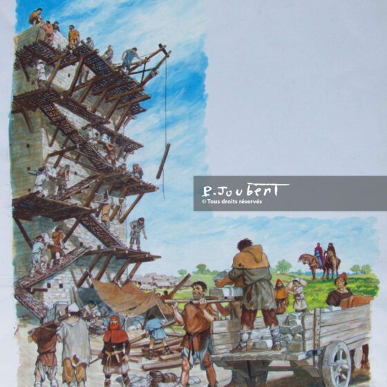 1987 La France des châteaux forts – Pendant la construction d’un château – Original