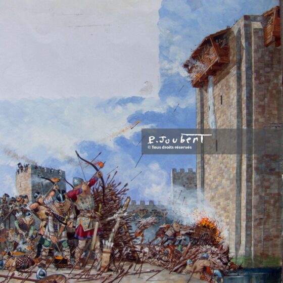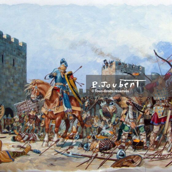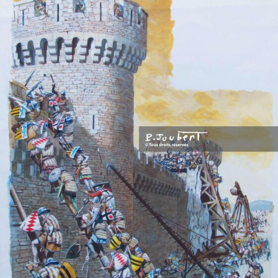 1987 La France des châteaux forts – Les soldats montent à l’assaut des murailles- Original