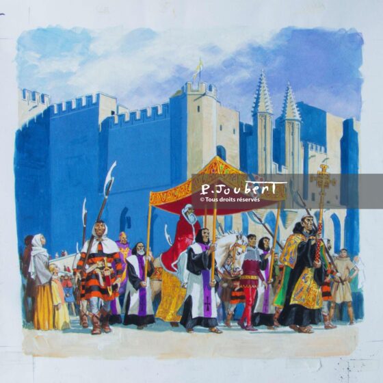 1987 La France des châteaux forts – Le pape Clément VI sort de son palais- Original