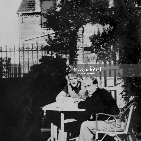 Photo de Pierre Joubert et Serge Dalens en pleine écriture des Voleurs (les enfants de l’espérance) 1953 à Meudon
