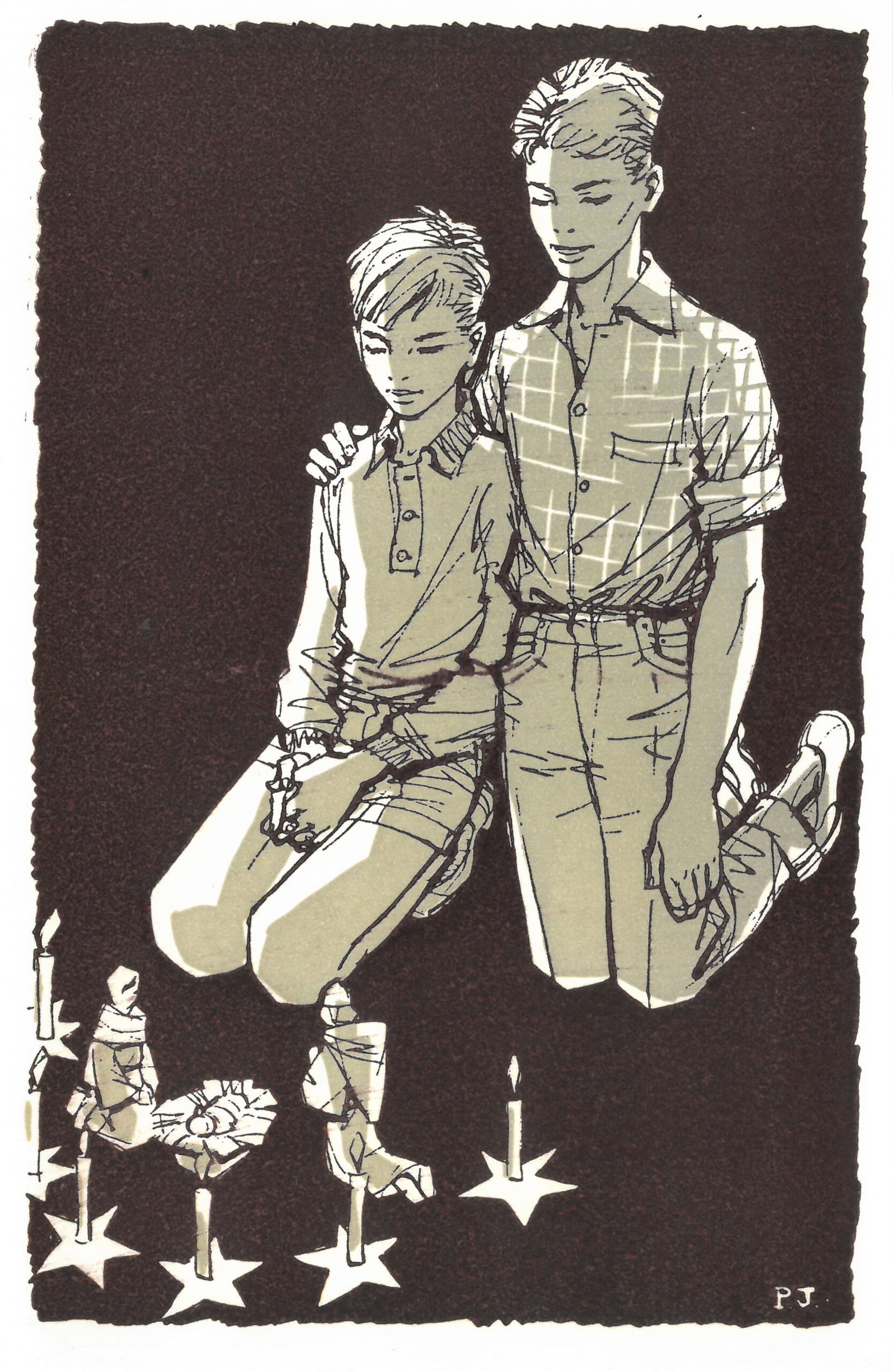 Titre : CP Riaumont : Devant la crêche 1965 (RDC)