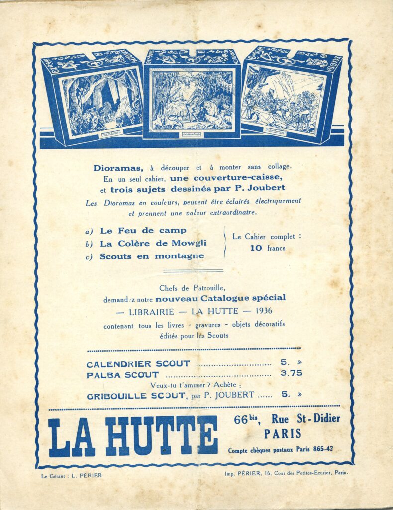 4e de couv: pub pour le «diorama» (en réalité «autodoria») Jipéro «Scènes de la vie scoute et de la jungle»