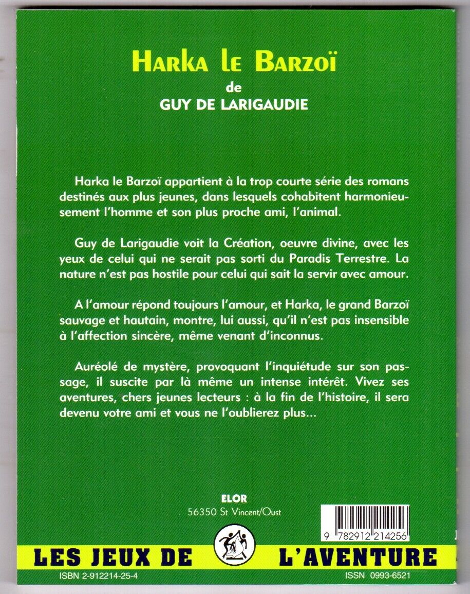 « Harka le Barzoï » Editions de l’Orme Rond (ELOR) collection Jeux de l’Aventure (JDA) n° 49, du 1er trimestre 1999, par Guy de Larigaudie, / Couverture de Daniel Lordey, illustrations intérieures de Pierre Joubert, Camille Alby et Albert Chabot