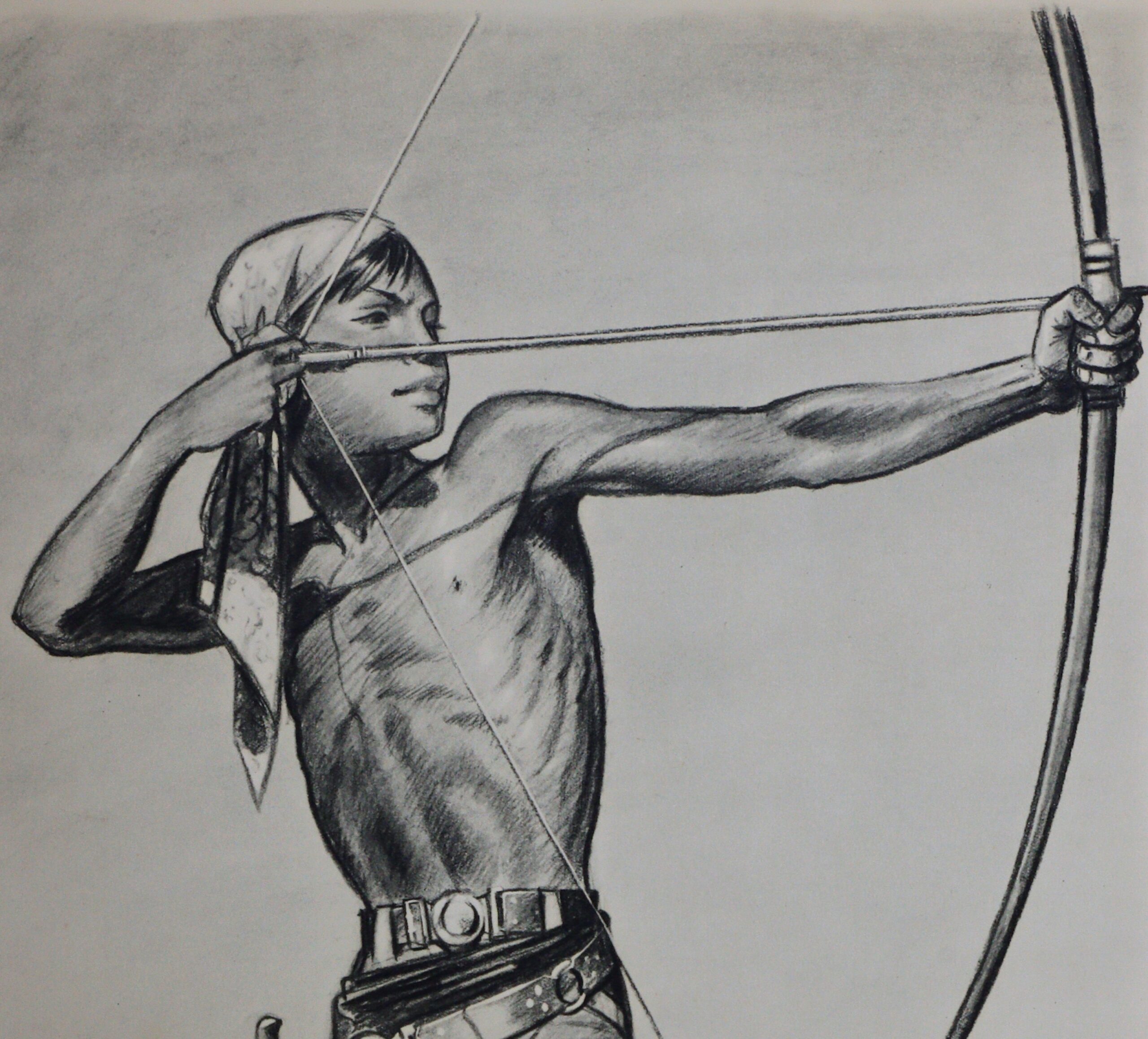 3 ème de la série de 1952 « Estampes de la vie scoute » une série de 13 gravures commandées par Jean-Louis FONCINE (« sujets scouts ou sociétés d’adolescents ») en noir et blanc, format 32×50 . Certaines ont été réimprimées (par Elor, les Amis du Signe de Piste, etc).