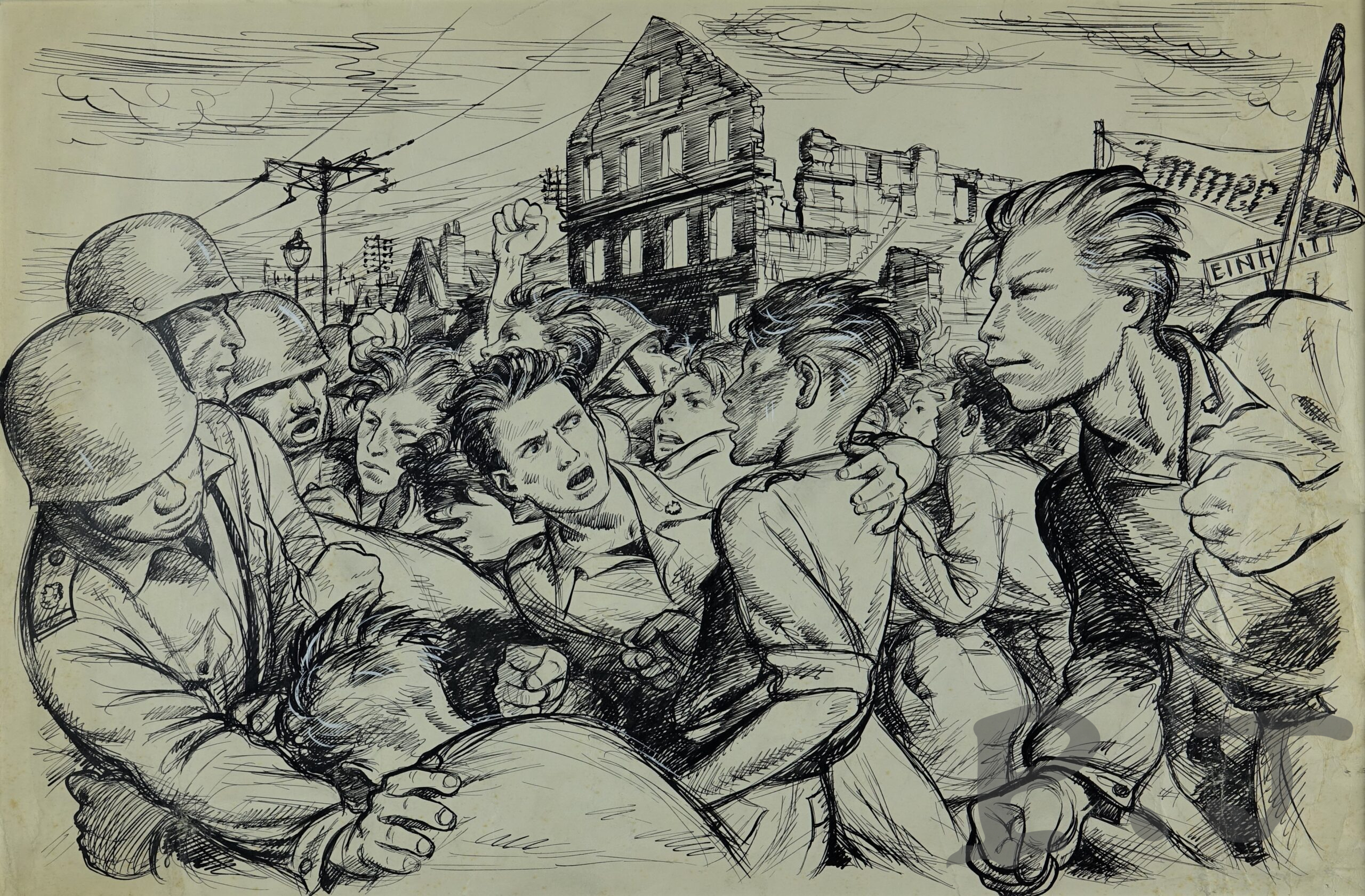 Description : combat de rue pour le roman ” les Enfants de Berlin” publié dans la Fusée 2 de 1954