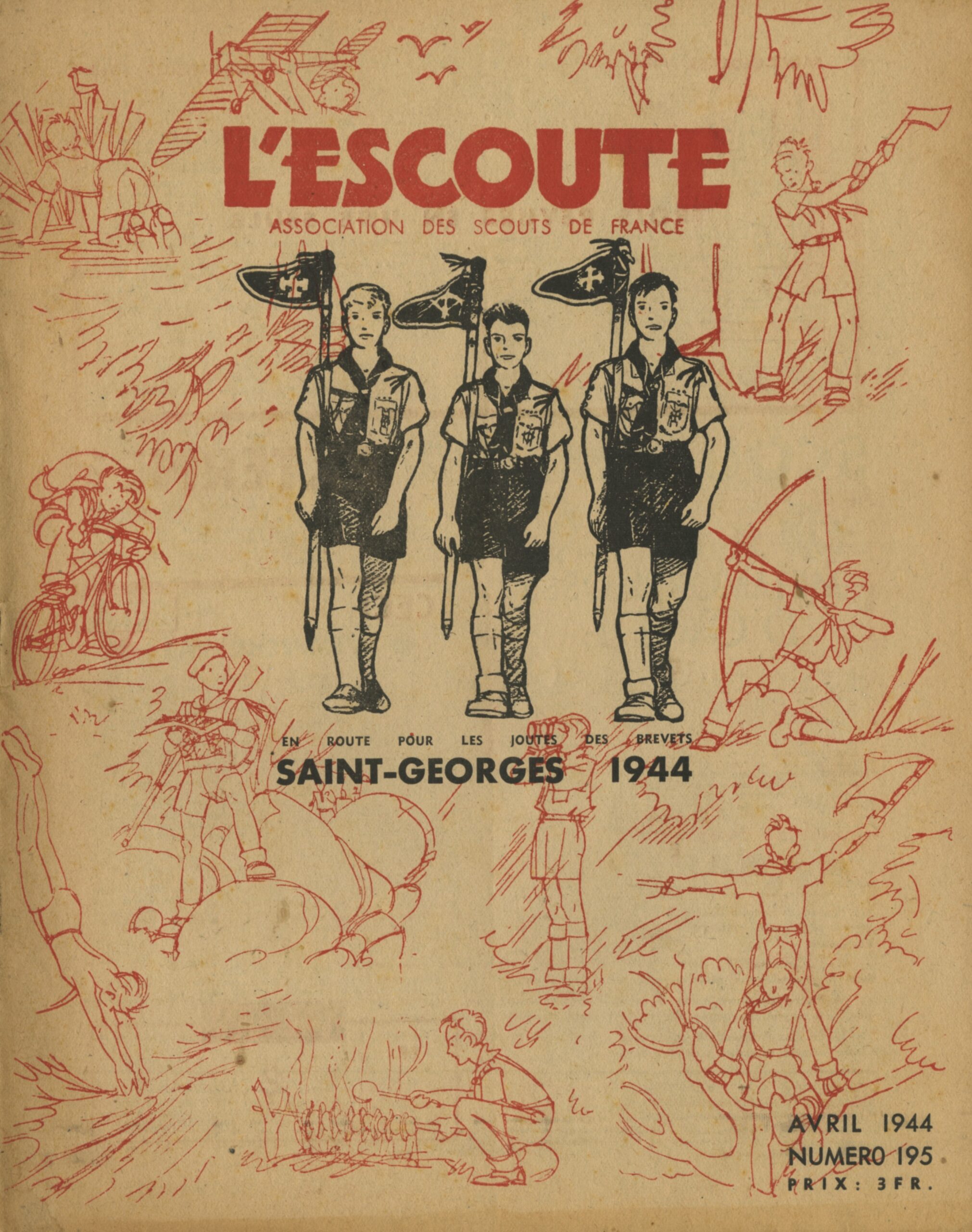 couverture «Saint Georges 1944»(3 cp marchant de face, 10 activités en fond)(ns)