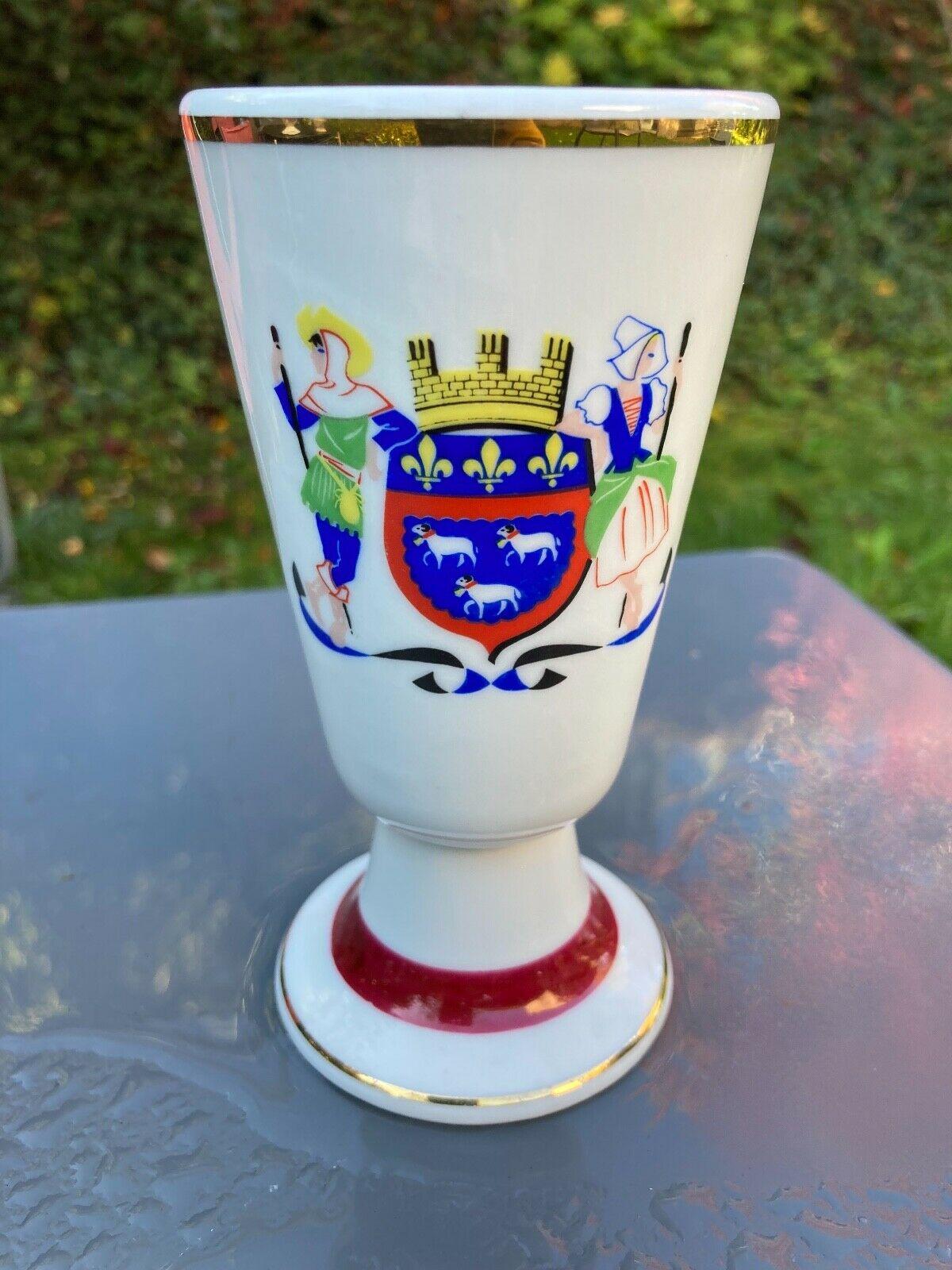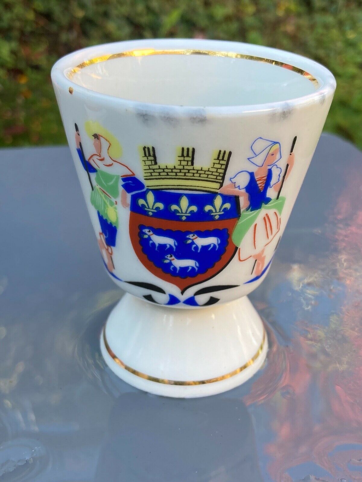 - Rare mazagran en porcelaine de la maison Guillaume à Bourges illustré par un dessin de Pierre Joubert.