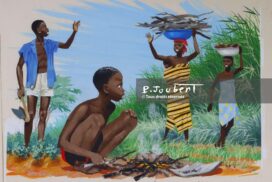 Code PJ : PierreJoubert-OR-RJ-JAM-KA-P3-1967 Titre : On échange des salutations (SAL) Technique : Gouache (GOU) Description : Tiré de la revue “Jeunes années magazine” numéro spécial sur la vie quotidienne de deux enfants africains dans leur village du pays Baoulé, en Côte d’Ivoire. page 3 Date : 1967 Précision date : Non daté non signé … Lire la suite de On échange des salutations – Original