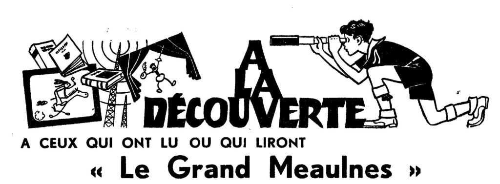 Code PJ : RJ-PJ41-P16 Titre : A la découverte de ceux qui ont lu ou qui liront le Grand Meaulnes Paru dans la revue Plein Jeu Numéro 41 de Plein Jeu en 1949 : p16 Type d’illustration : Année : 1949 Type d’édition : édition originale et possiblement repris dans d’autres numéros Thème : Scout … Lire la suite de PLEIN JEU 41 – ” A la découverte de ceux qui ont lu ou qui liront le Grand Meaulnes “