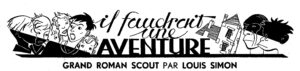 Code PJ : RJ-RPJ45-P15 Titre : Il faudrait une aventure Paru dans la revue Plein Jeu Numéro 45 de Plein Jeu en 1950 : p15 Type d’illustration : titre de rubrique Année : 1950 Type d’édition : Illustration Originale (IO) reprise a chaque numéro du roman Thème : Aventure Scout Roman Numéro de page dans … Lire la suite de PLEIN JEU 45 – ” Il faudrait une aventure “