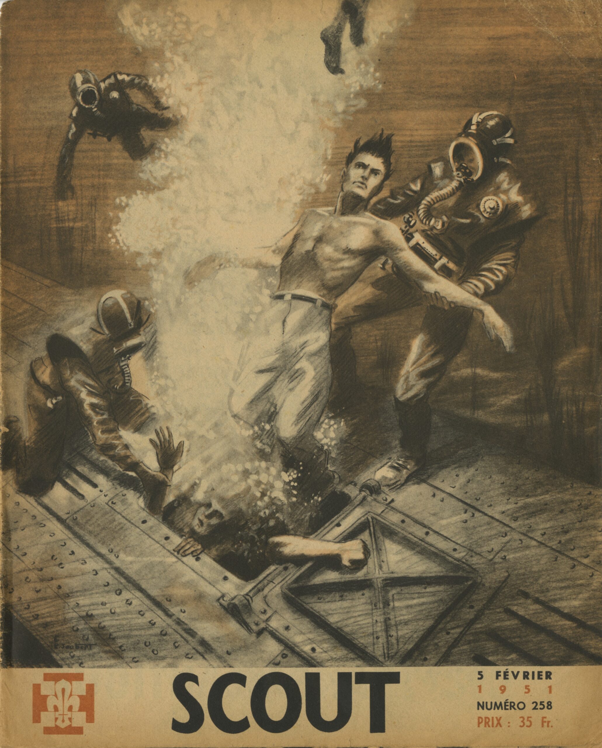 Repris dans 50 ans de couvertures Scout (éd Plein Vent) album 24 X 32 de 160 pages par Jean-François Vivier