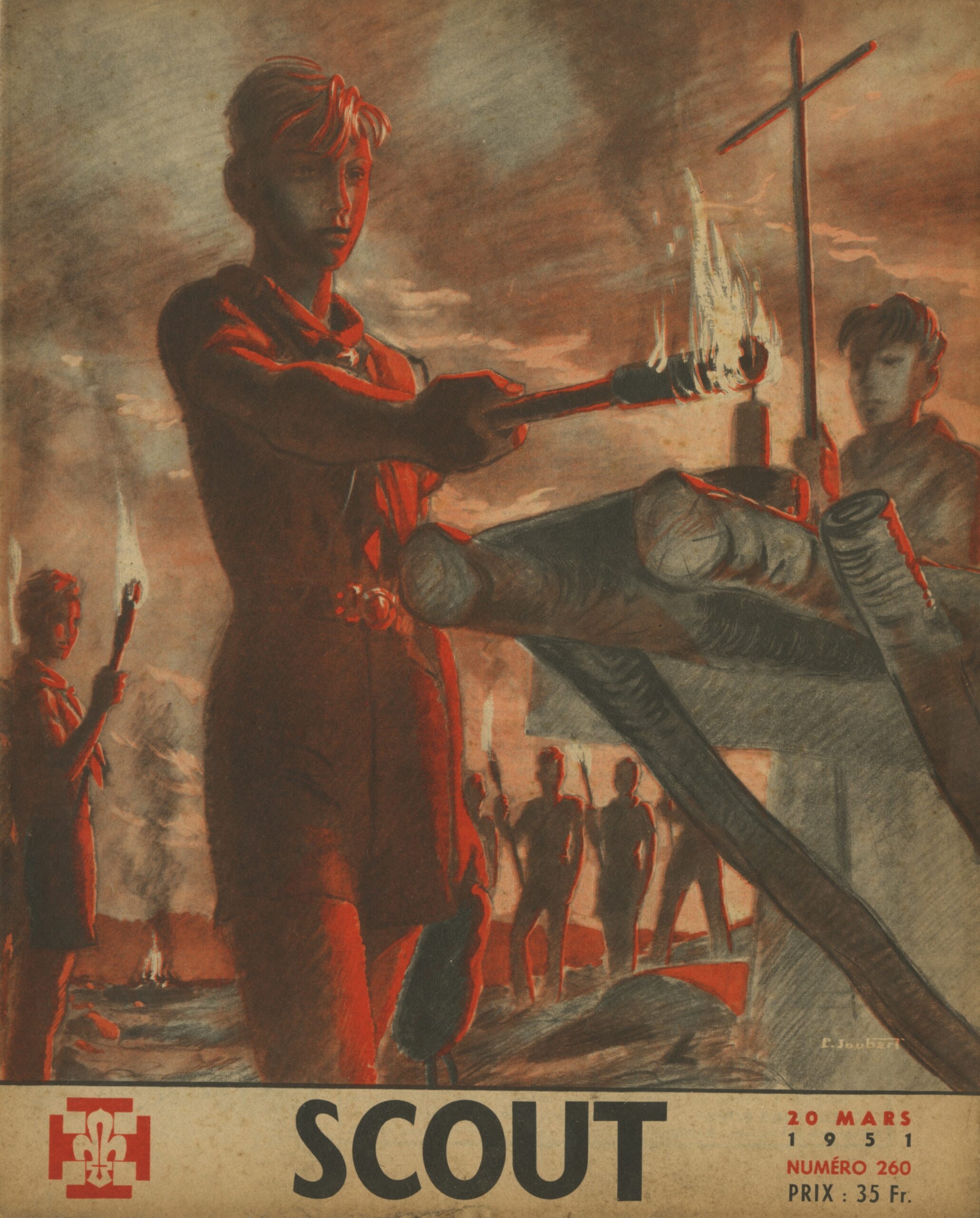 Repris dans 50 ans de couvertures Scout (éd Plein Vent) album 24 X 32 de 160 pages par Jean-François Vivier