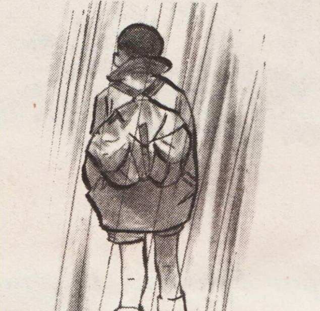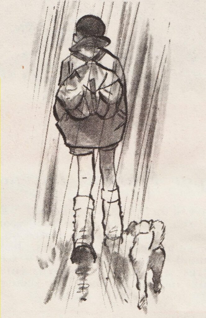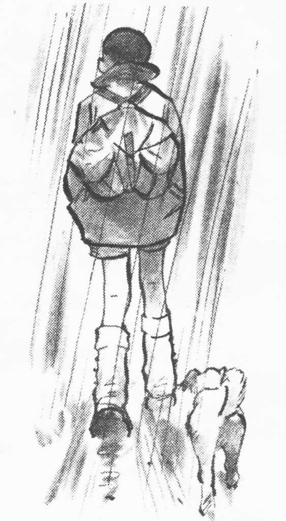 SCOUT 320 «Pas de pitié pour les mammouths!...» scout marchant sous la pluie