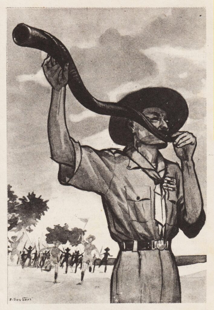 La couverture n’est pas de PJ mais de BP lui même : petits dessins de son livre “scout”