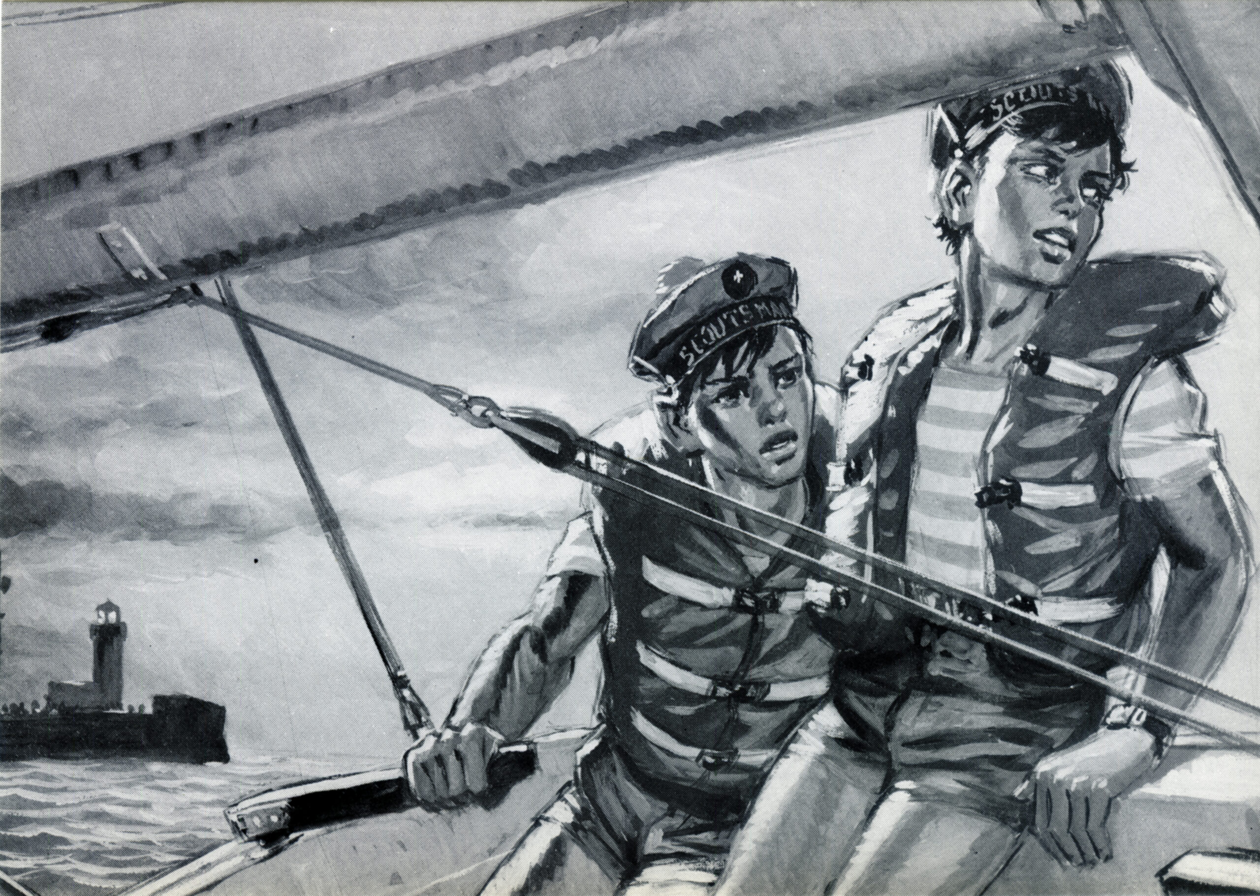 Type d’édition : Illustration originale pour les Scouts Marins du Ponant tiré en carte postale