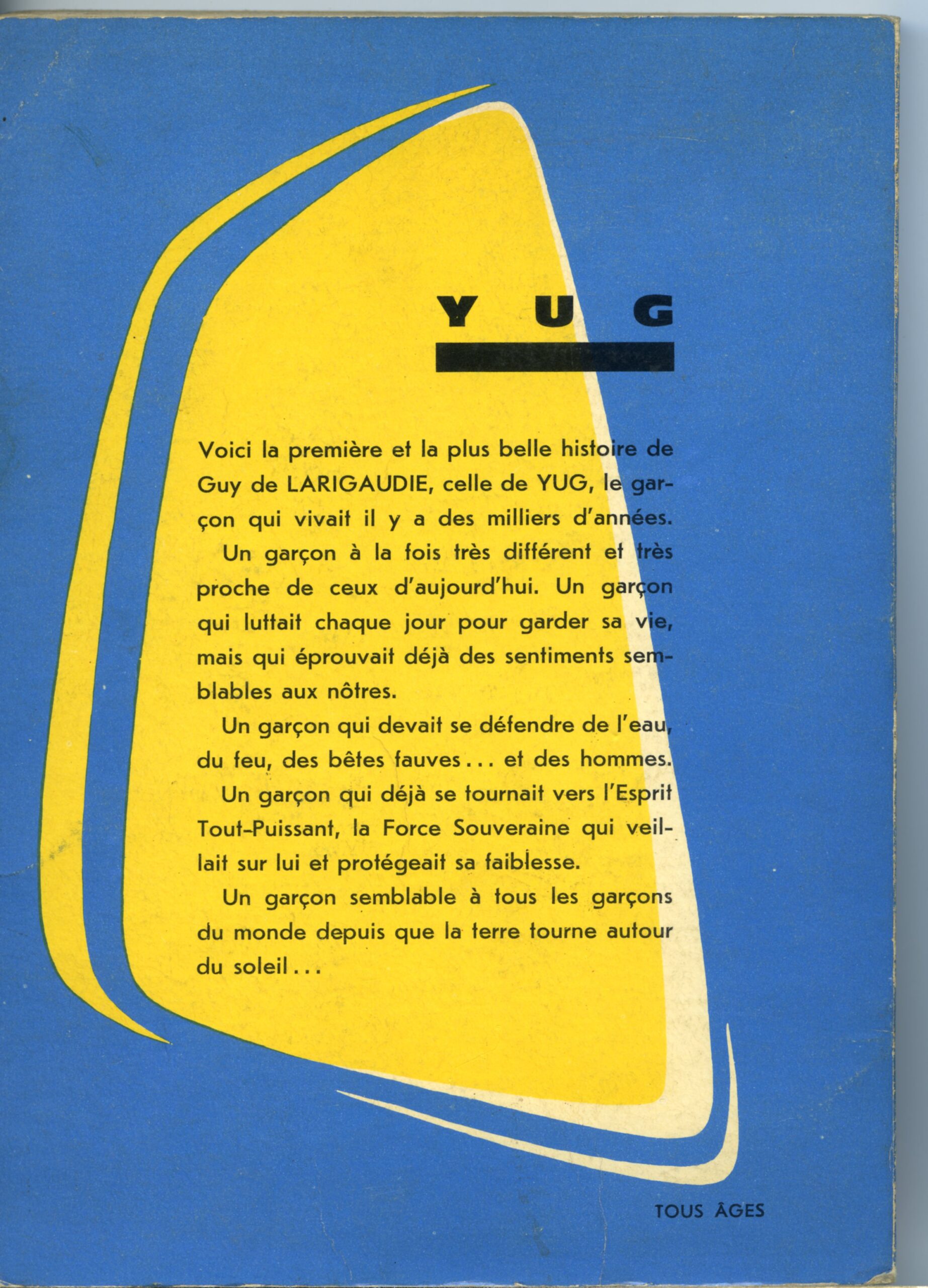 Voici la plus belle et la première histoire de Guy de Larigaudie, celle de Yug, garçon qui vivait il y a des milliers d’années.