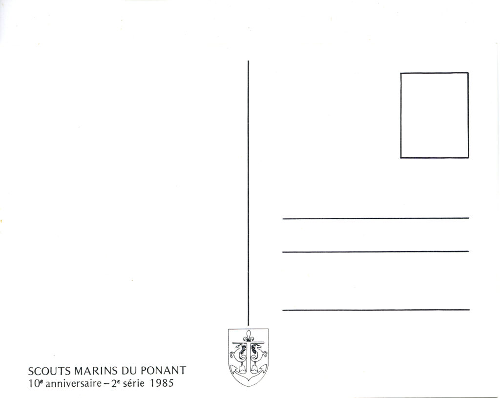 Type d’édition : Illustration reprise du Nouveau Signe de Piste 70 : Marco pour les Scouts Marins du Ponant tiré en carte postale pour leur 10 ème anniversaire en 1985.